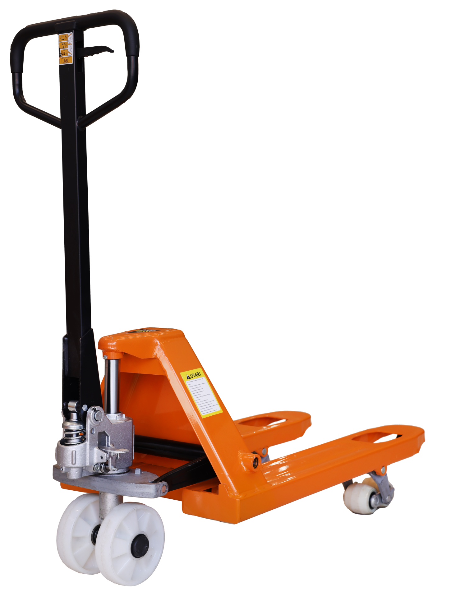 Çatal ölçüsü 540x800 mm olan bu transpalet, geniş alanlarda dahi yüklerin güvenli bir şekilde taşınmasını sağlar. Bu geniş ölçü, farklı boyutlardaki paletlerin taşıma işlemini kolaylaştır.
