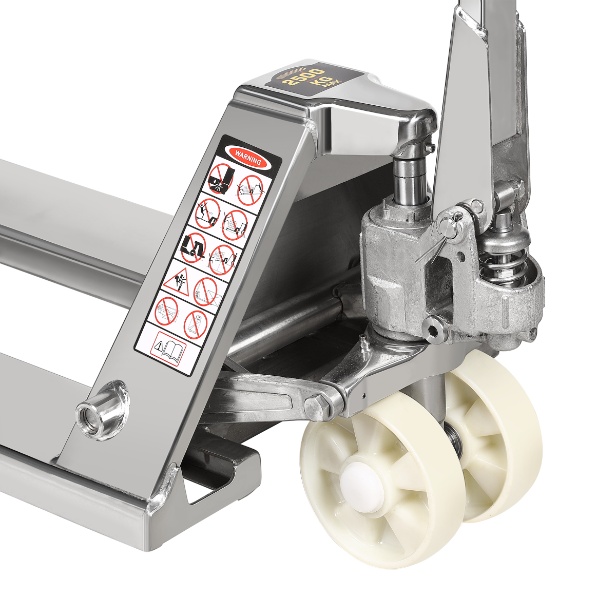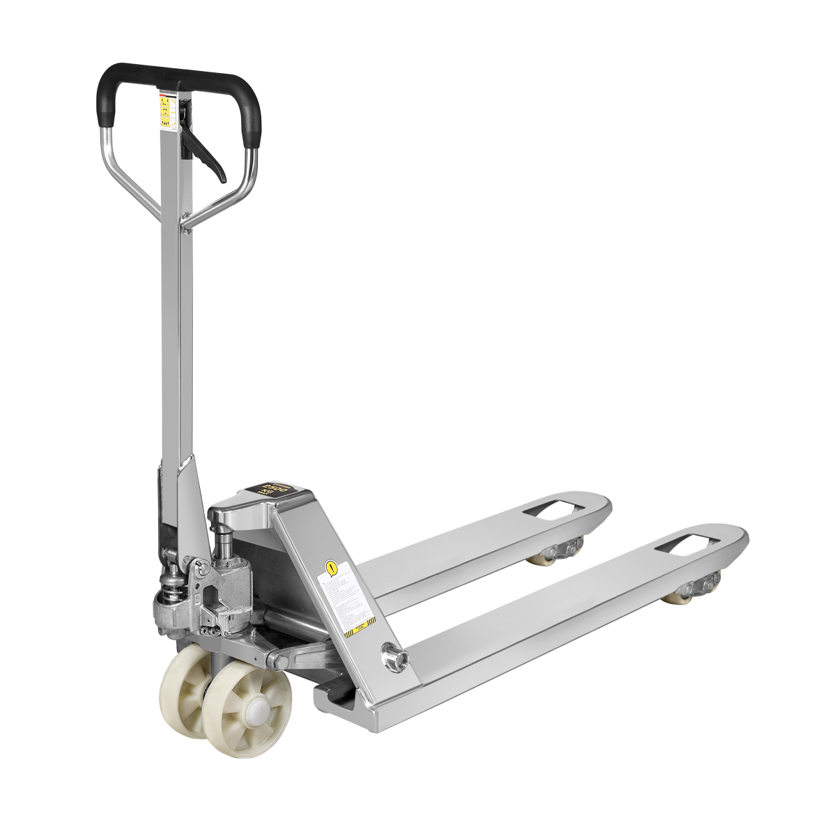 Inox Paslanmaz Transpalet, gıda işleme tesisleri, mandıralar ve kimya endüstrileri gibi nemli ortamlarda uzun ömürlü çalışmak üzere özel olarak 304 kalite paslanmaz çelik malzemeden üretilmiştir.