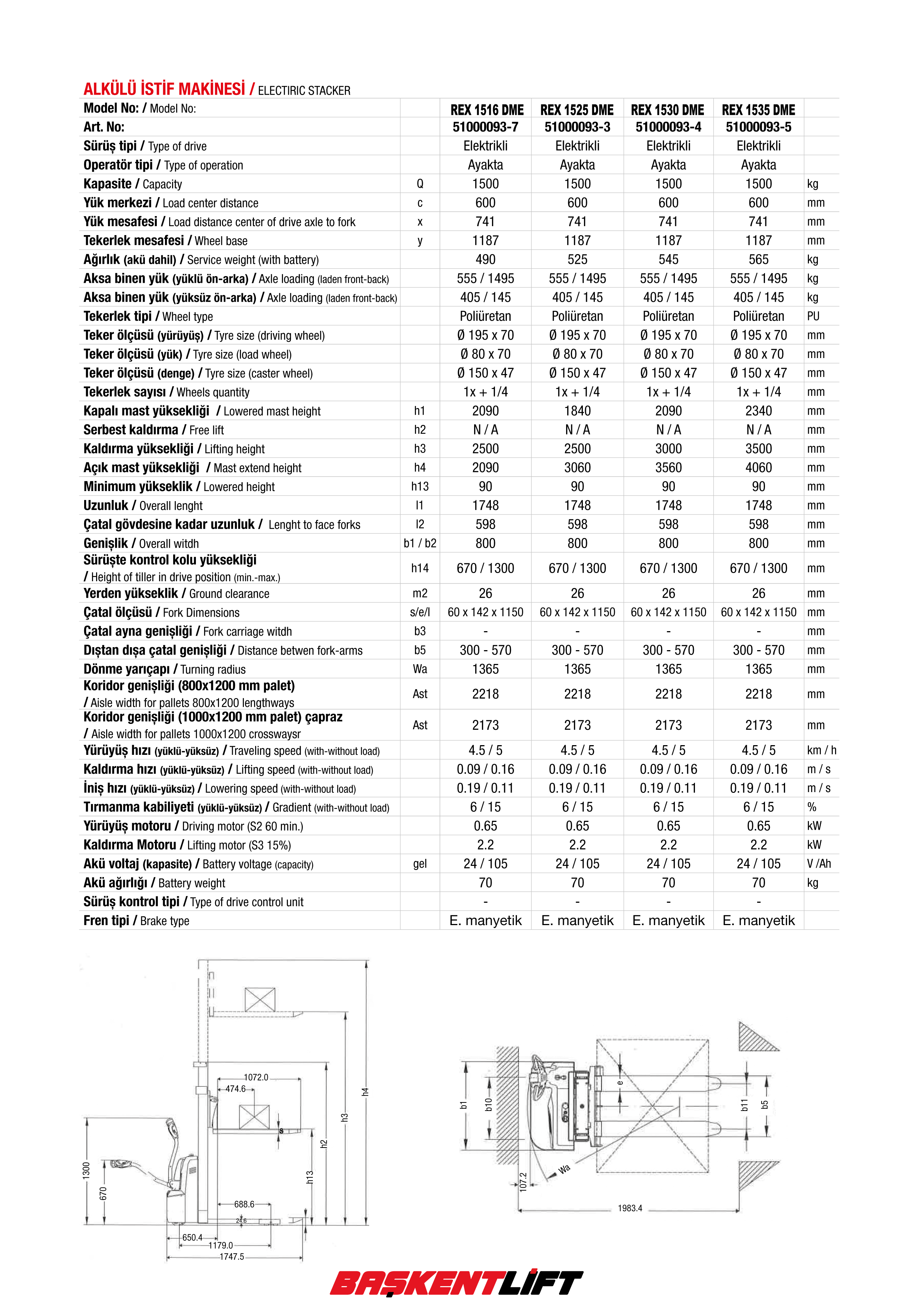 1.5 TON 2.5 METRE TAM AKÜLÜ İSTİF MAKİNASI