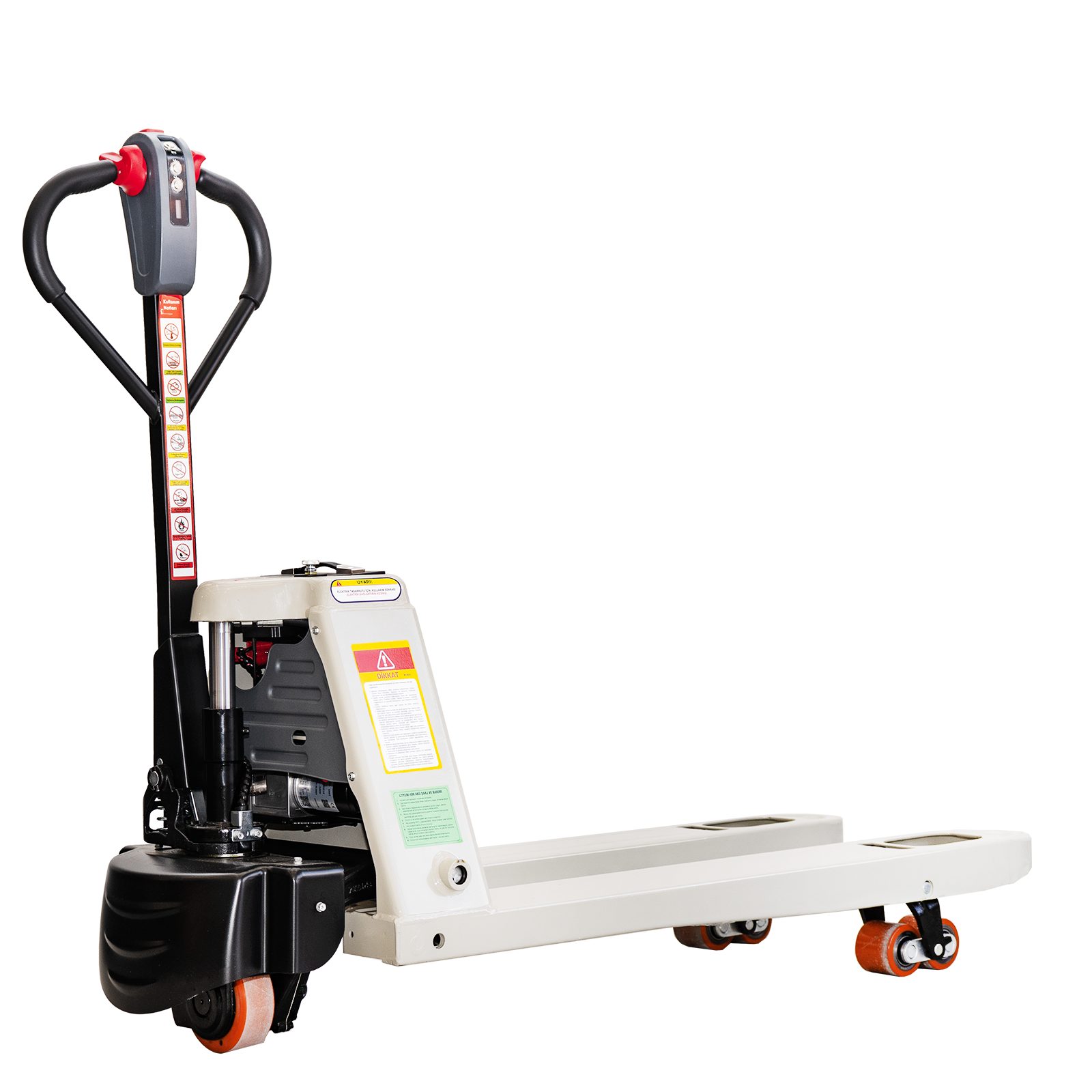 elektrikle çalışan bir transpalettir. Lityum-iyon pil, transpaletin tekerleklerini çalıştıran